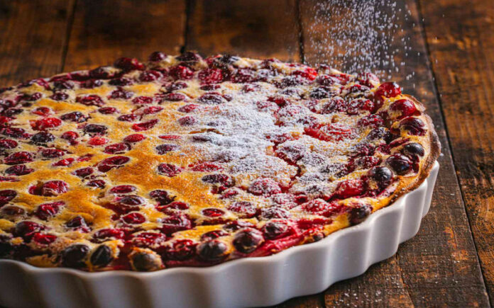 Originating in the Limousin region, clafoutis is a rustic dessert made by baking fresh fruit—traditionally black cherries—in a flan-like batter.