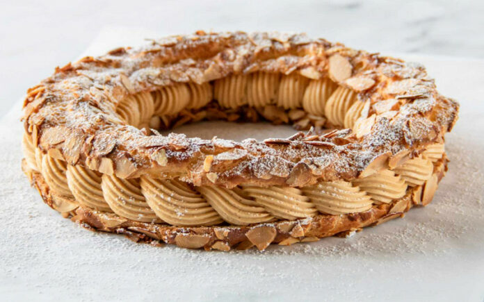 Created in 1910 to commemorate the Paris-Brest-Paris bicycle race, the Paris-Brest is a ring-shaped choux pastry filled with praline-flavored cream.