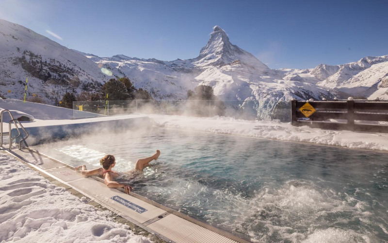 Zermatt’s Posta Hotel offers a luxurious winter spa experience in the shadow of the Matterhorn. Its spa features Alpine herb baths, warm stone therapy, and panoramic saunas overlooking snow-capped peaks.