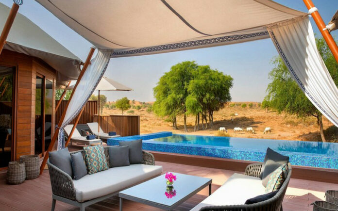 Set in an Arabian desert reserve, this resort offers warmth, privacy, and star-filled winter nights. Each villa has a private heated pool, perfect for late-night dips under the desert sky.