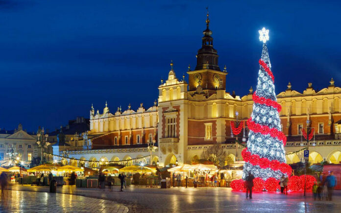 Traditional music fills the air, while carolers and horse-drawn carriages add a touch of timeless romance. Local specialties like grilled oscypek cheese and hot mulled wine keep visitors warm as snowflakes swirl through the historic center. With its medieval charm and festive atmosphere, Kraków feels like a piece of Europe’s Christmas past perfectly preserved.