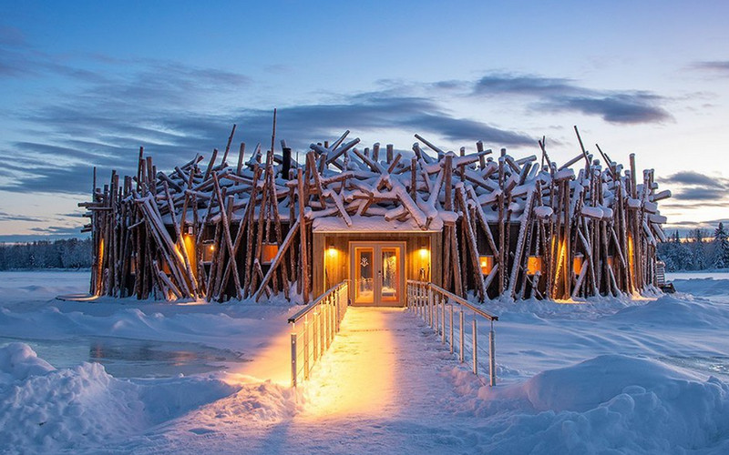 Floating on a frozen river in Swedish Lapland, Arctic Bath is unlike any other spa destination. In winter, the central circular bathhouse becomes surrounded by snow and ice, creating an otherworldly scene.