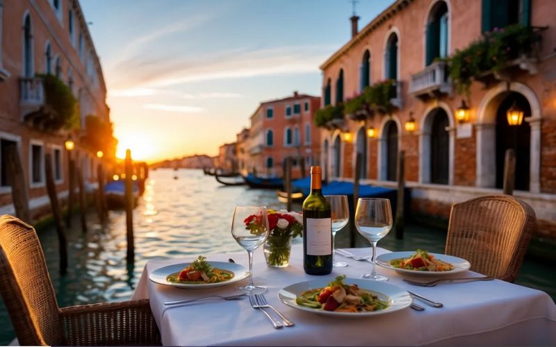 Finish with a romantic dinner at a canal-side restaurant, followed by a peaceful evening stroll through Venice’s softly lit streets.