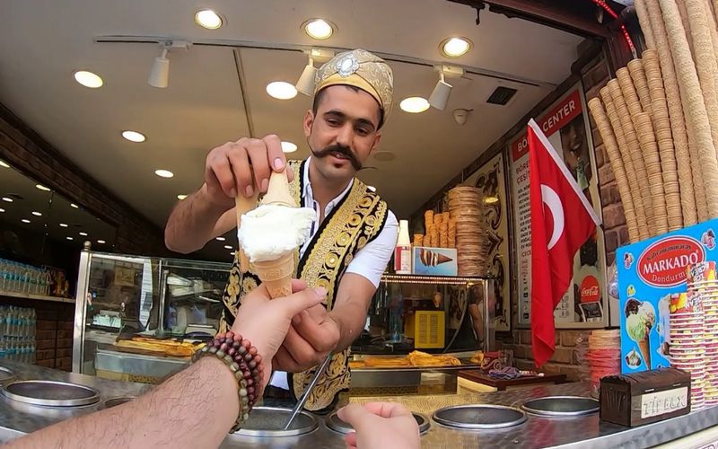 Beyond the playful street performances, Turkish ice cream delivers rich dairy flavor with floral undertones. It’s less sugary than many Western varieties, and its texture alone makes it one of the most memorable frozen desserts on the planet.