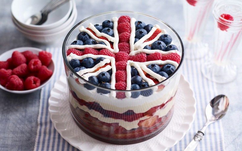 If there’s one dessert that truly represents British celebrations, it’s Trifle. A colorful, layered dessert made with sponge cake, fruit, custard, jelly, and whipped cream, it’s often served in a large glass bowl to show off its beautiful layers.