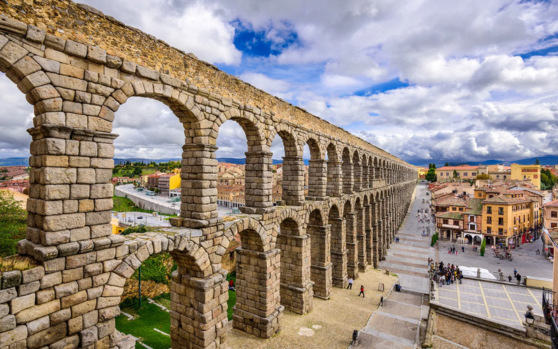 Spain’s Roman heritage is on full display in Segovia, where the aqueduct stands as one of the best-preserved Roman engineering feats in the world.